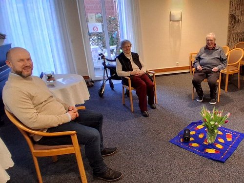 Einmal im Monat treffen sich Bewohnerinnen und Bewohner des Wohnstifts St.…