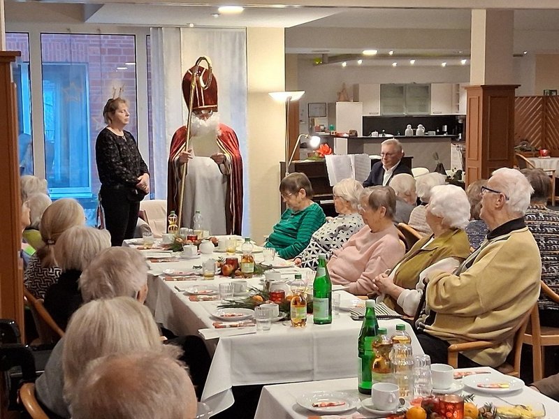 Am Klavier begleitet von Jakob Janssen, Familiar des Deutschen Ordens, wurden traditionelle Advents- und Nikolauslieder angestimmt. Zur Stärkung gab es Kaffee und winterliche Leckereien. Höhepunkt des Nachmittages war der Besuch des Nikolauses, der mit seiner Geschichte zur vorweihnachtlichen Stimmung beitrug, wie weitere Vorträge von Bewohnenden und Gästen.